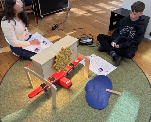 Die 5b hat zusammen mit Herrn Tepaße und Frau Hodankov das Schülerlabor PhänomexX  in Raesfeld besucht. Jolin aus der 9d war als Patin auch dabei, sie schreibt dazu Folgendes: Mit sehr viel Spaß und Freude haben die Schülerinnen und Schüler mehr über Energie und Strom gelernt. Außerdem haben sie auch etwas über Tiere, Natur sowie auch Bäume erfahren. Es wurde fleißig mitgedacht und es wurden passende Notizen gemacht. Ist man an einer Aufgabe/Station alleine nicht weitergekommen, hat man dann doch als Team die passende Lösung gefunden. Natürlich gab es auch Pausen, unter anderem sind wir zur Abwechslung zu dem Spielplatz um die Ecke gegangen. Anschließend wurde noch etwas an den Stationen weitergearbeitet. Wie im Flug war die Zeit hier auch vorbei. Mit neuem Wissen haben wir uns dann auch auf den Rückweg gemacht.
