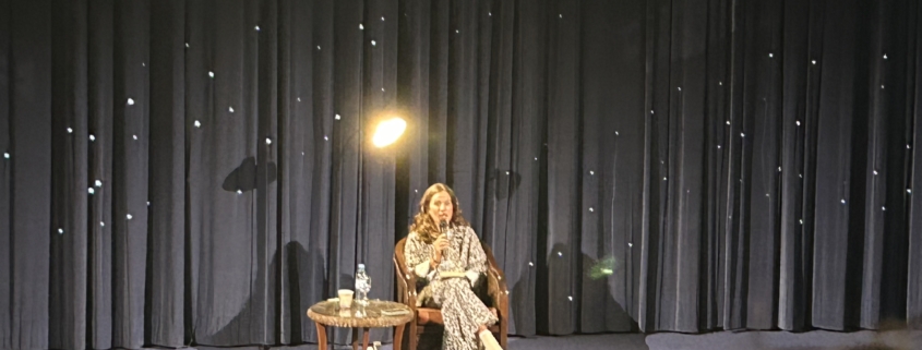 Eine Lesung im Kinodrom, das war neu für die Schülerinnen und Schüler der Jahrgangsstufe 9. Auf der Bühne vor der Leinwand nahm Mona Ameziane Platz, die zunächst von ihrem vielfältigen Berufsleben (z.B. als Moderatorin bei EinsLive, dem WDR oder ihrer Arbeit als Podcasterin) berichtete. Anschließend las sie Passagen aus ihrem Buch „Auf Basidis Dach“ vor, in dem es um ihr Aufwachsen zwischen zwei Kulturen (ihr Vater kommt aus Marokko, ihre Mutter ist Deutsche) geht. Am Ende nahm sie sich novh viel Zeit und beantwortete die Fragen der ZuhörerInnen.