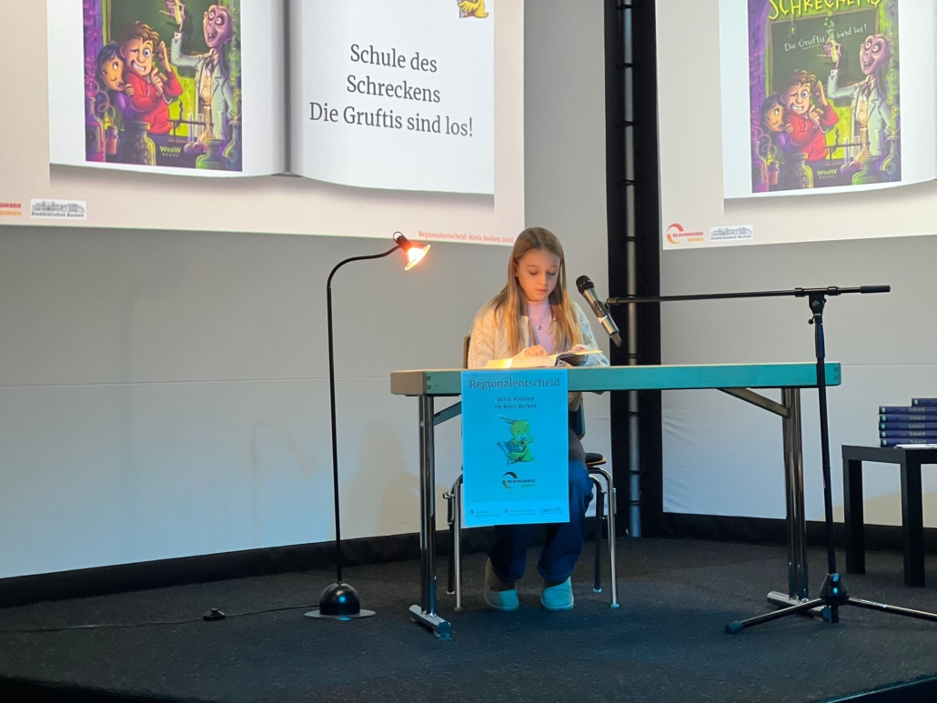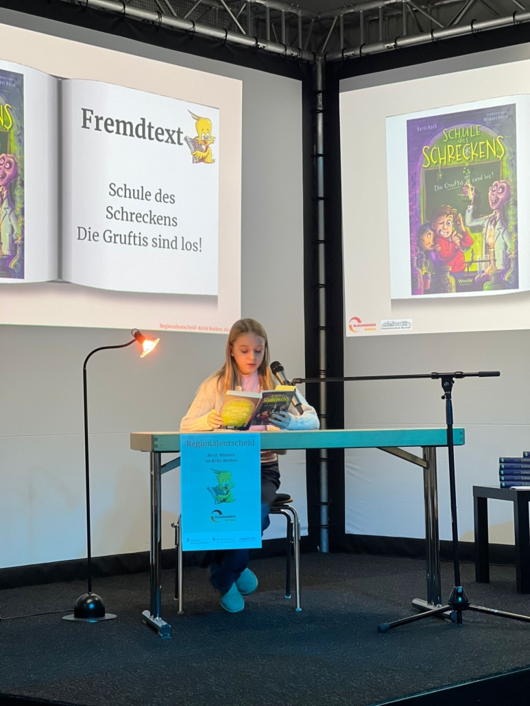 Am Lesewettbewerb (Regionalentscheid) der 6. Klassen nahm für die IvM Ida aus der 6a teil. Jede Schülerin und jeder Schüler musste einen vorbereiteten und einen unbekannten Text vorlesen. Der Wettbewerb, der in der Stadtbibliothek stattfand, bot neben der Aufregung auch viel Spaß und war eine schöne Erfahrung. Auch wenn es für das Weiterkommen leider nicht gereicht hat, kann Ida sehr stolz auf sich sein!
