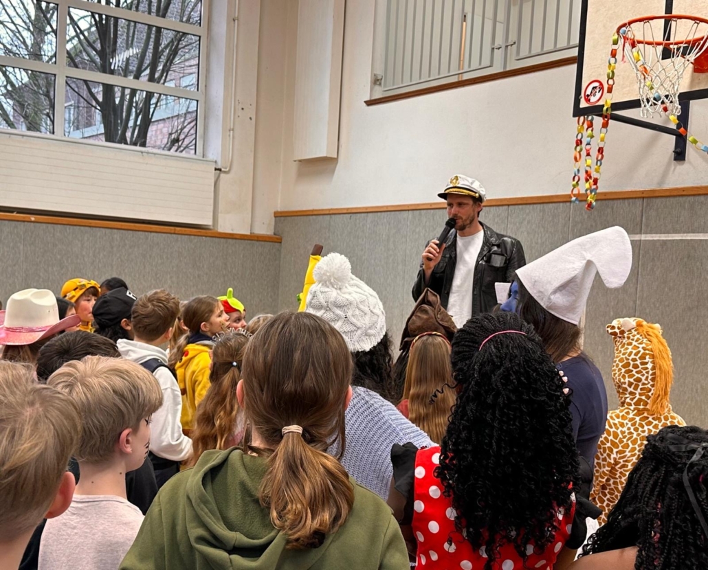Die Karnevalsfeier der 5. und 6. Klassen hat allen viel Spaß gemacht. Organisiert wurde das bunte Fest von der Schülervertretung (SV), die sich wieder viel Mühe bei der Planung gegeben hatte. In der Turnhalle warteten auf die Agenten, Bananen, Prinzessinnen, Aliens und Schlümpfe verschiedene Spiele, ein Kostümwettbewerb, die traditionelle Polonaise und natürlich die köstliche Verpflegung. IvM Helau!