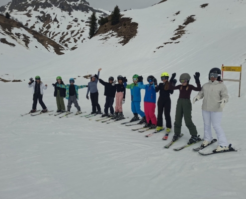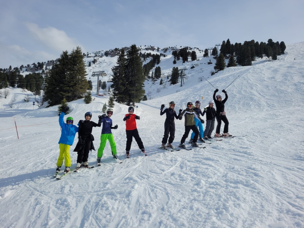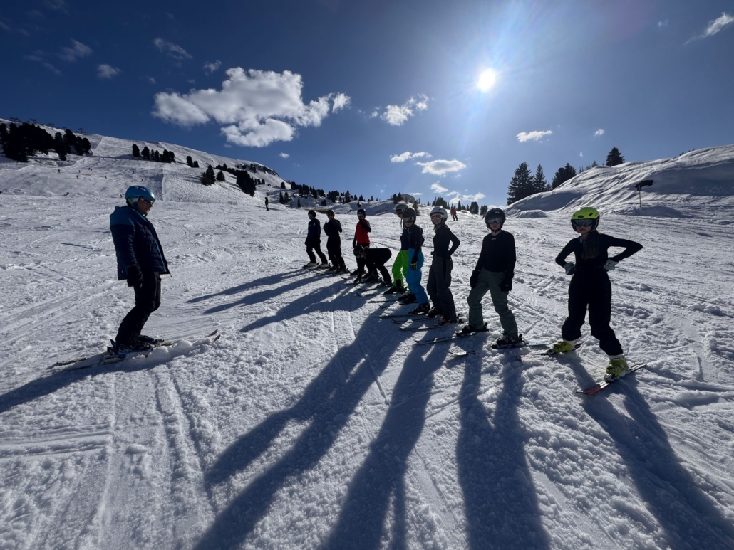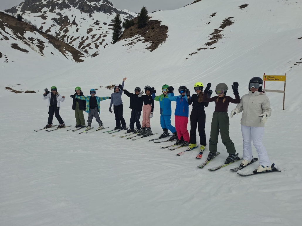 In der vergangenen Woche machten sich unsere 7er-Klassen auf den Weg nach Bezau – und trotz der frühen Abfahrt und der langen Reise war die Stimmung von Anfang an großartig. Das fantastische Wetter tat sein Übriges, um die Vorfreude auf die Tage im Schnee zu steigern. Der erste Skitag hatte es allerdings in sich: Nach den ersten Stunden auf der Piste sahen einige eher so aus, als hätten sie sich für einen Wellness-Urlaub angemeldet – die Motivation war kurz im Keller. – Skifahren ist eben deutlich anstrengender, als es aussieht. Doch mit den ersten kleinen Erfolgen wendete sich die Stimmung schnell. In den folgenden Tagen wurden die Schülerinnen und Schüler immer sicherer, erzielten großartige Fortschritte und trugen dank der kräftigen Sonne sogar den ein oder anderen Sonnenbrand davon. Am Ende waren sich alle einig: Es war eine tolle Woche voller Bewegung, guter Laune und gemeinsamer Erlebnisse. Und das Beste – niemand ist im Krankenhaus gelandet. Ein rundum gelungenes Abenteuer in den Bergen.