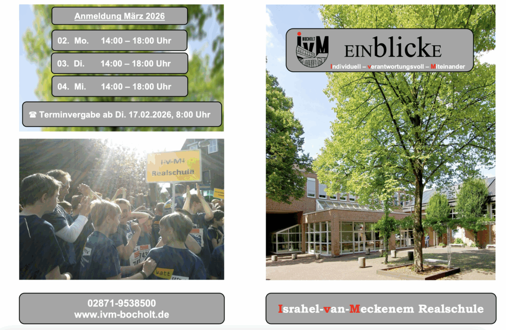 Am Samstag, 29.11.2025, von 10:00 -13:00 Uhr, ermöglicht die Israhel-van-Meckenem Realschule Einblicke in ihr Schulleben.