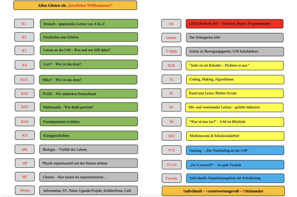 Der Tag beginnt um 10:00 Uhr mit der Begrüßung der Eltern und Kinder in der Mensa.